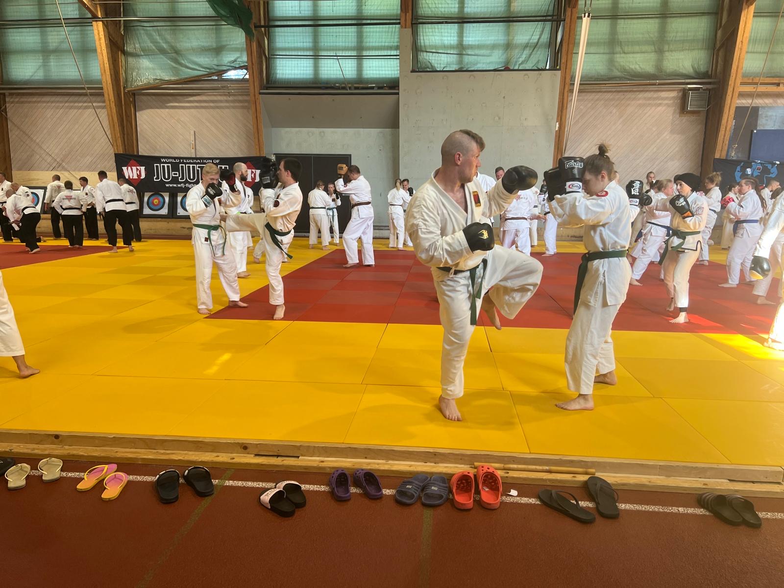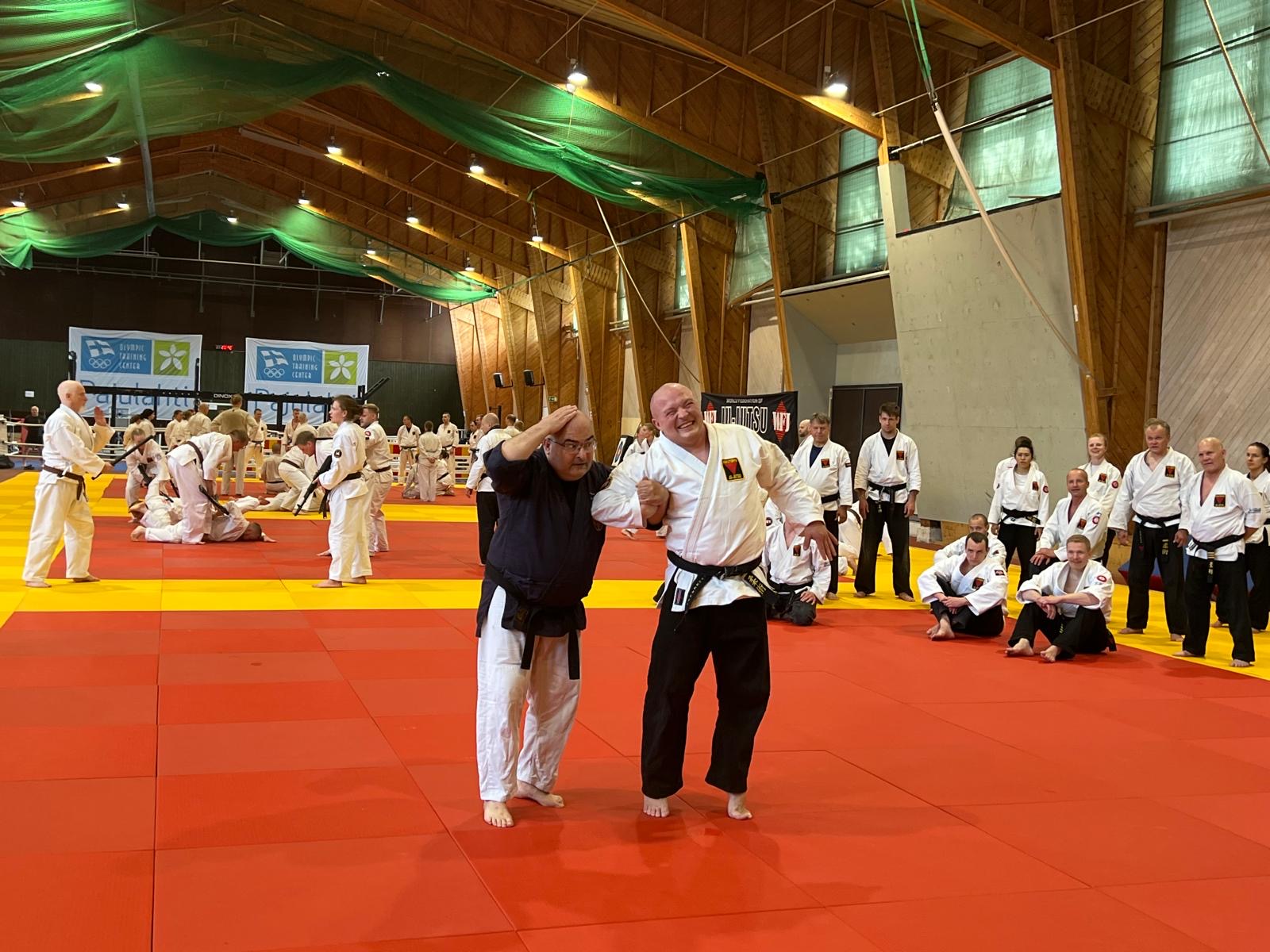 Hokutoryu ju-jutsun perinteinen kesäleiri pidettiin 13-15.6.2025 Pajulahden liikuntakeskuksen tiloissa ja upeissa maisemissa. Leiriin osallistui myös suuri joukko innokkaita junnuja. Useimmille junnuille tämä oli koko perheen tapahtuma, sillä vanhemmilla oli mahdollisuus samaan viikonloppupakettiin kuin leiriin osallistuvilla. Osa harjoituksista, kuten Norjan Ottar Vassendenin potkuharjoitukset, pidettiin ulkona.